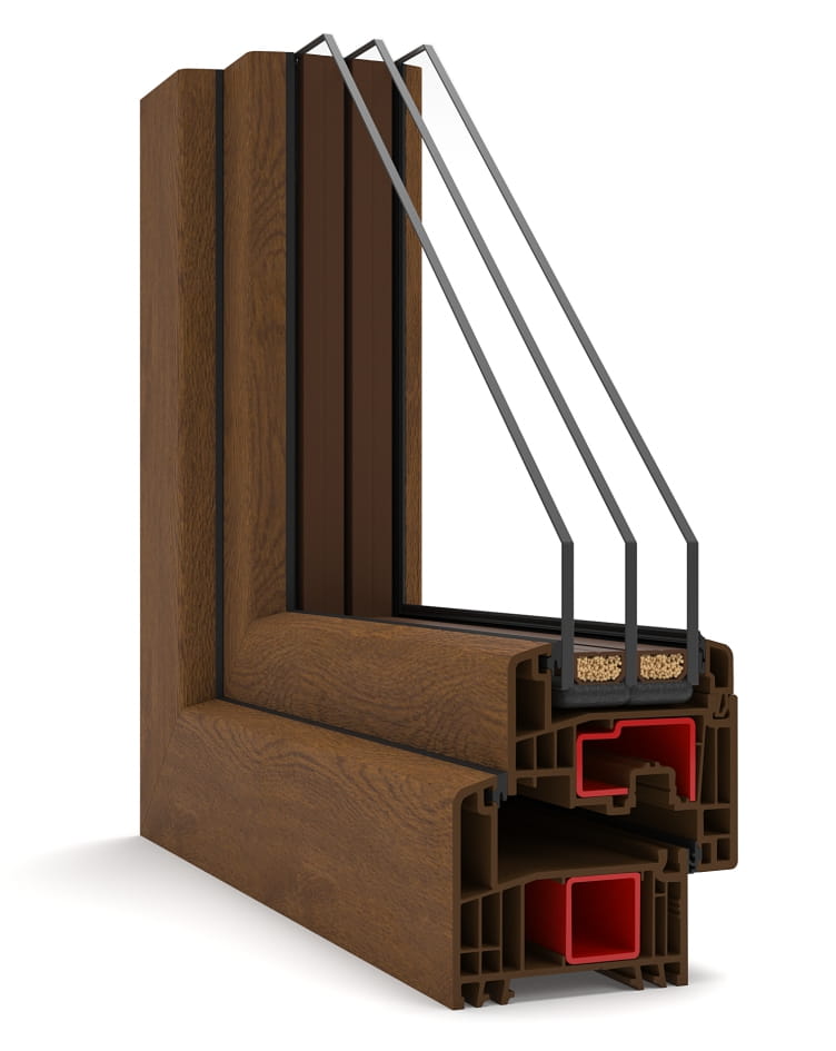 • 6-komorowa budowa profili – zapewnia bardzo dobrą izolację cieplną